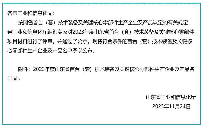 按照省首台(套)技(jì)術(shù)裝備及關鍵核心零部件生產企業及產品認定的有關規定(dìng),經各市工業和信息化局推薦,專家評審等環節,擬(nǐ)將286種產(chǎn)品(pǐn)列入《2023年度山東省首台(tái)(套)技術裝備及關鍵核心零部件(jiàn)企(qǐ)業及產品名單》